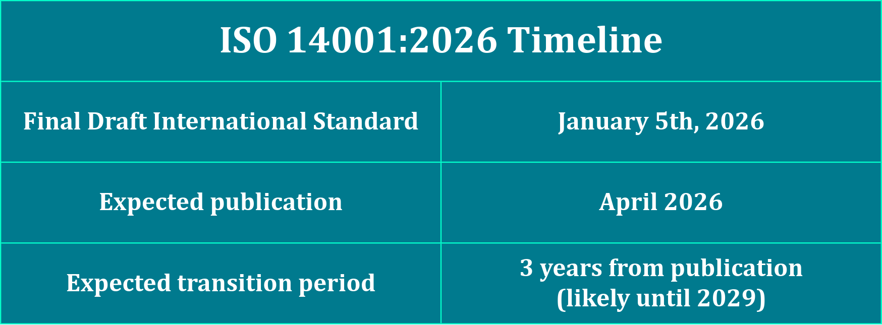 Las organizaciones actualmente certificadas bajo la ISO 14001:2015 disponen de un período de transición de tres años para adaptarse a la nueva versión.